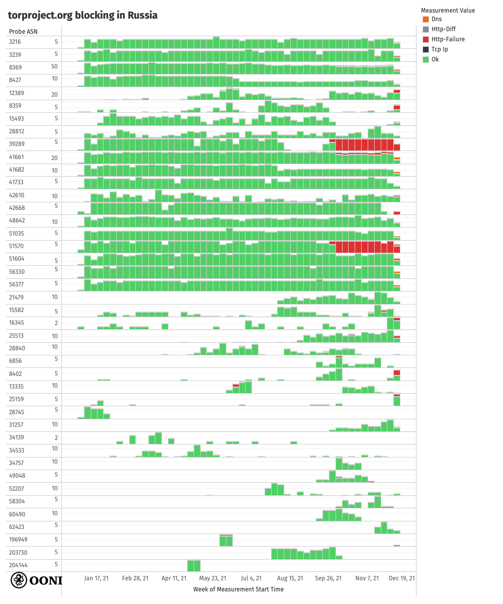 January 2021 to December 2021, https://explorer.ooni.org/search?since=2021-11-08&until=2021-12-09&failure=false&probe_cc=RU&test_name=web_connectivity&domain=www.torproject.org