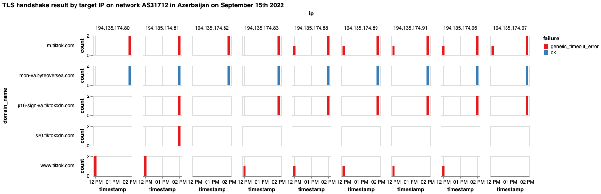 We analyzed OONI measurements collected from Azerbaijan from 13th-15th September 2022 and noticed that many of them appear to time out when attempting to establish a TLS handshake to the target endpoint.