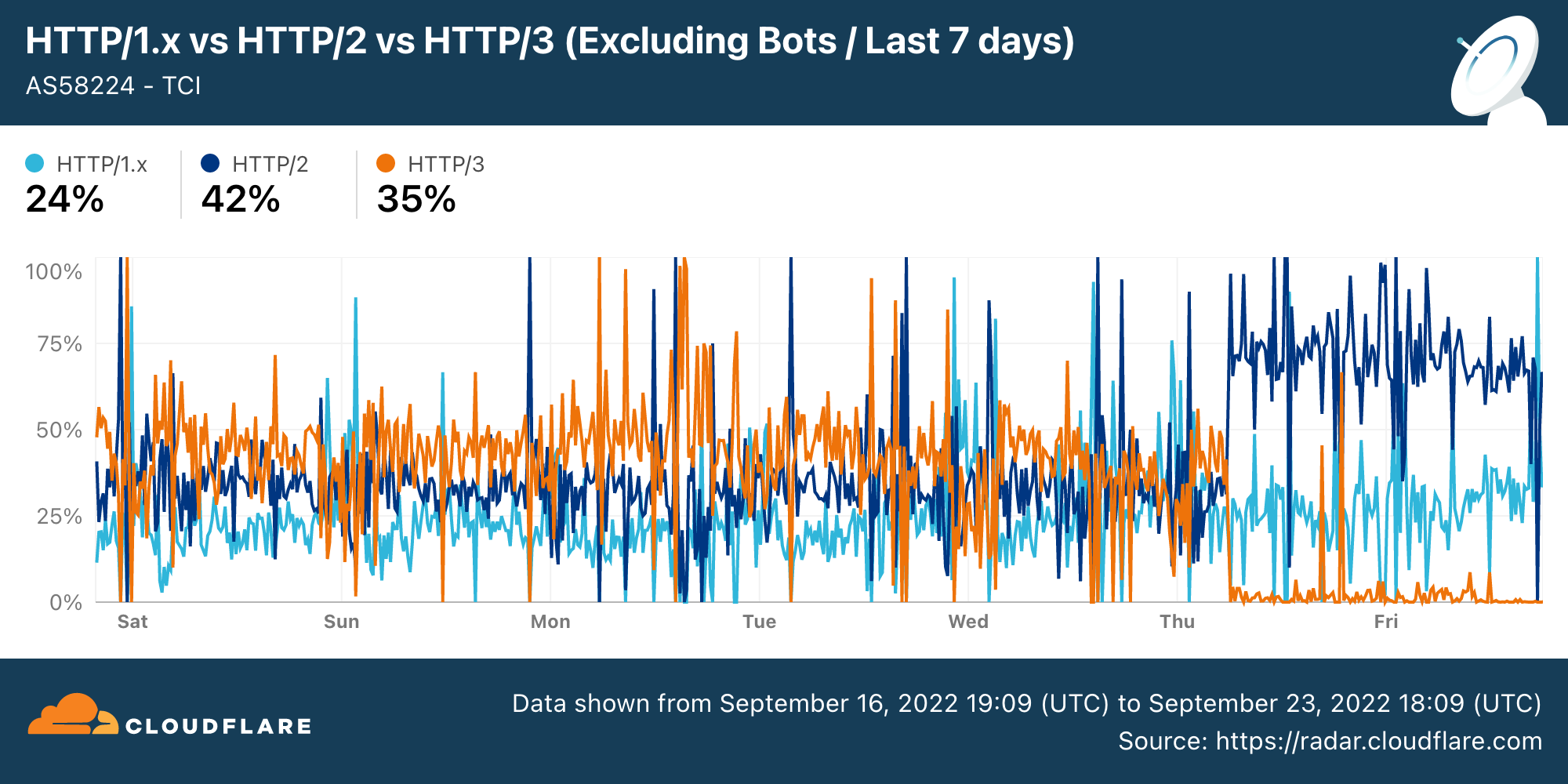 Chart: HTTP/3 traffic drop in TCI (source: Cloudflare Radar).