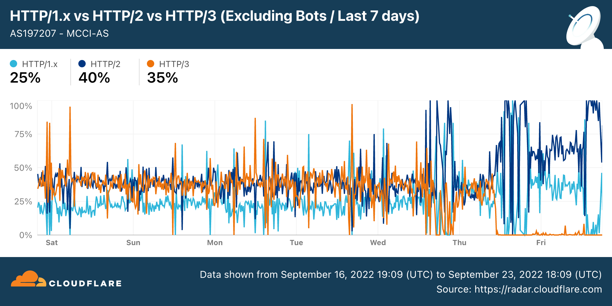 Chart: Cloudflare Radar signals for MCCI (AS197207) between 18th September 2022 to 25th September 2022 (source: Cloudflare Radar).