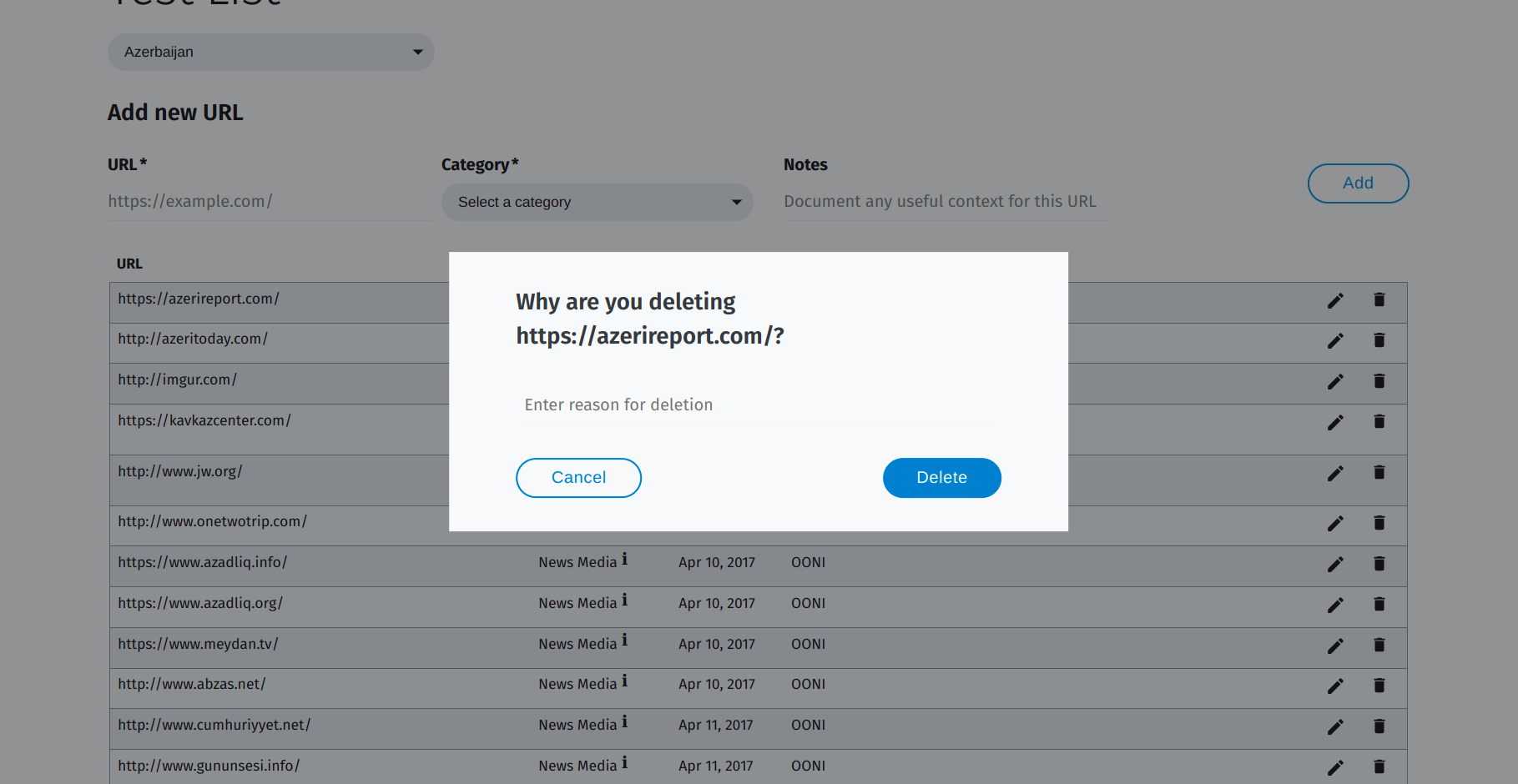 Help the internet freedom community discover website blocks around the world by contributing through the new Test Lists Editor!