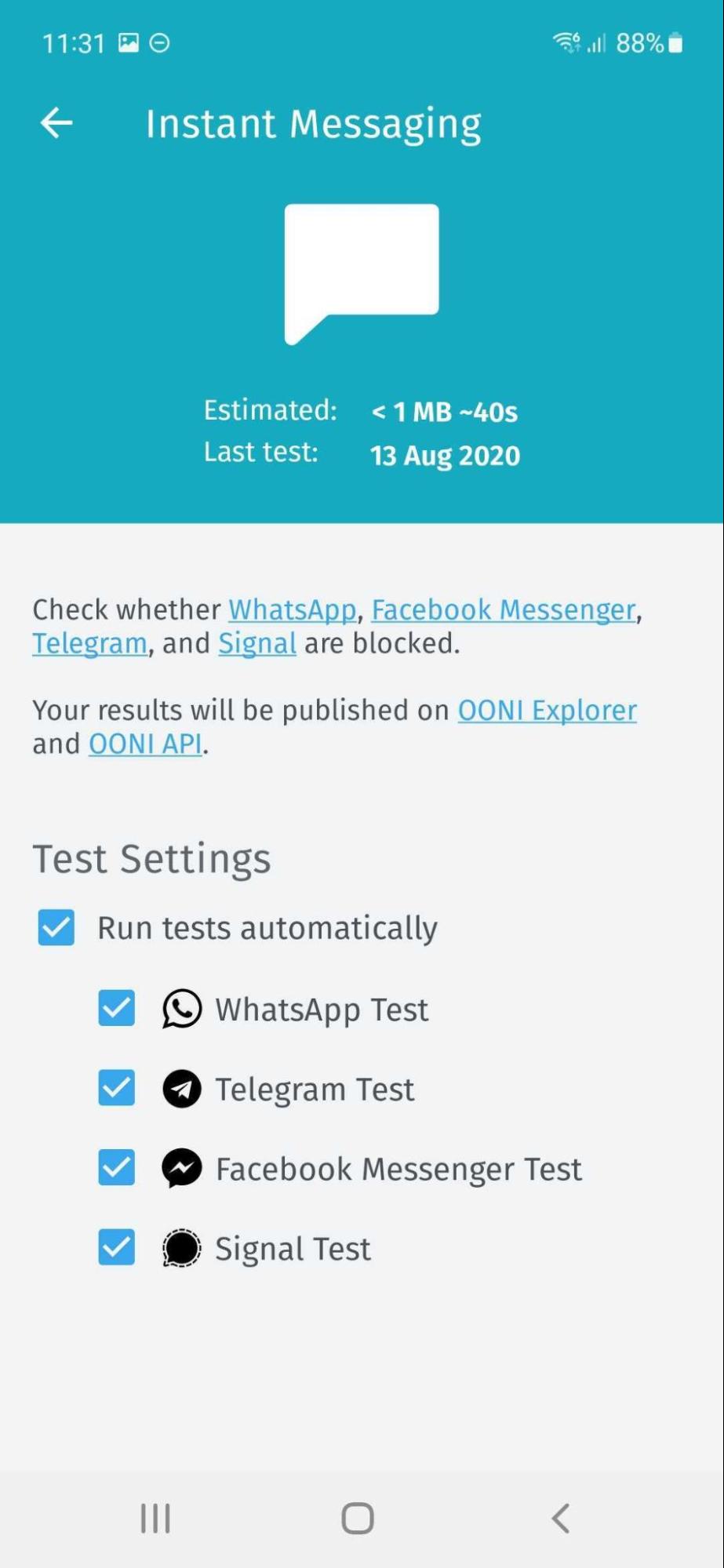 Now that your OONI Run link has been installed (while being configured to run automatically), you don’t need to do anything else. Your OONI Probe app will automatically test the websites in the OONI Run link on an ongoing basis!